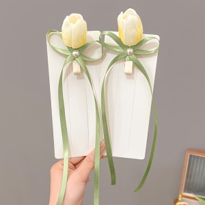 Home>Accessories> Beauty>Hair accessories>2pcs sweet tulip flowers ribbon hair clip Korean style duckbill clip imitation side clip ponytail clip fashion gift hair accessories