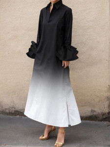 Home>Women' Fashion>Women's Dresses>Maxi Dresses>A-Line Flared Sleeves Gradient Split-Side Lapel Maxi Dresses