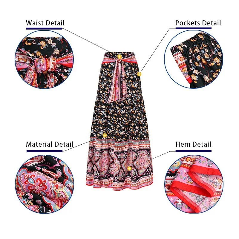 Boho Style Retro Elegant Casual Loose High Waist A-Line Skirts