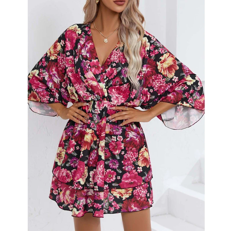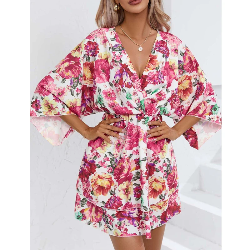 Casual Loose Bohemian Beach Floral Print Elegant Mini Dress