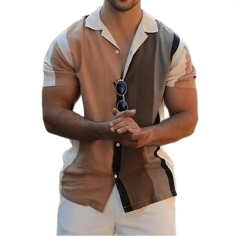 Home>Men's Fashion>Men's Blouse & Shirts>Casual Men's Linen Color Loose Solid Color Short Sleeve Fashion Lapel Shirt