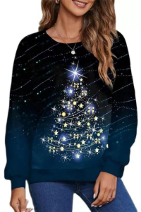 Home>Women' Fashion>Women's Tops>T-Shirts>Christmas Tree Print Long Sleeve T Shirt