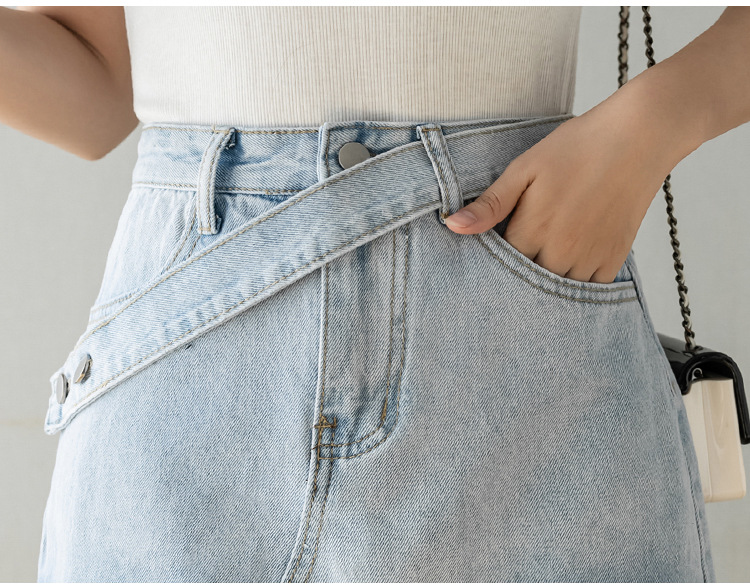 High Waist Irregular Burr Denim Skirt for Women...