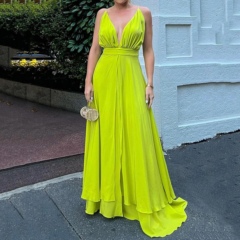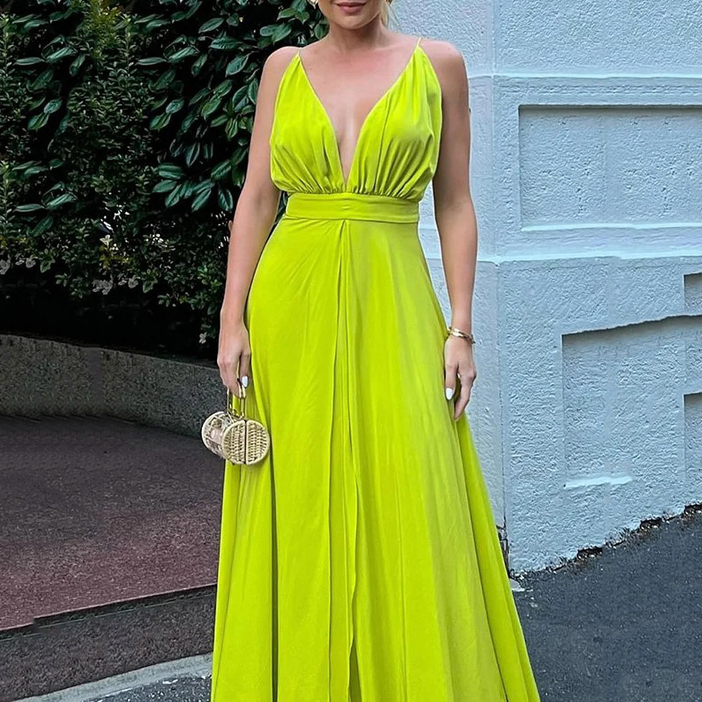 Home>Women' Fashion>Women's Dresses>Maxi Dresses>Fashion Deep V Solid Color Backless Irregular Elegant Party Maxi Dress