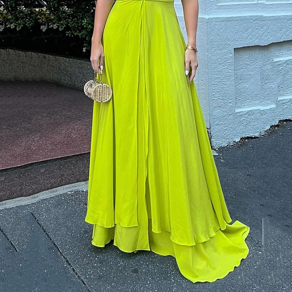 Fashion Deep V Solid Color Backless Irregular Elegant Party Maxi Dress