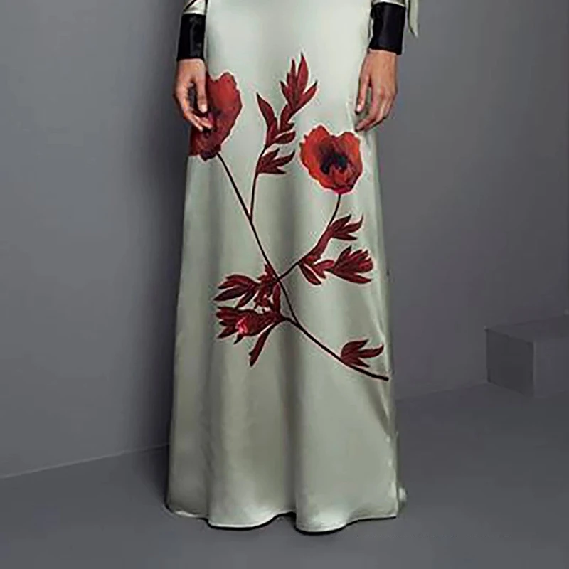 Senior Floral Long Dresses Women Lantern Sleeve...