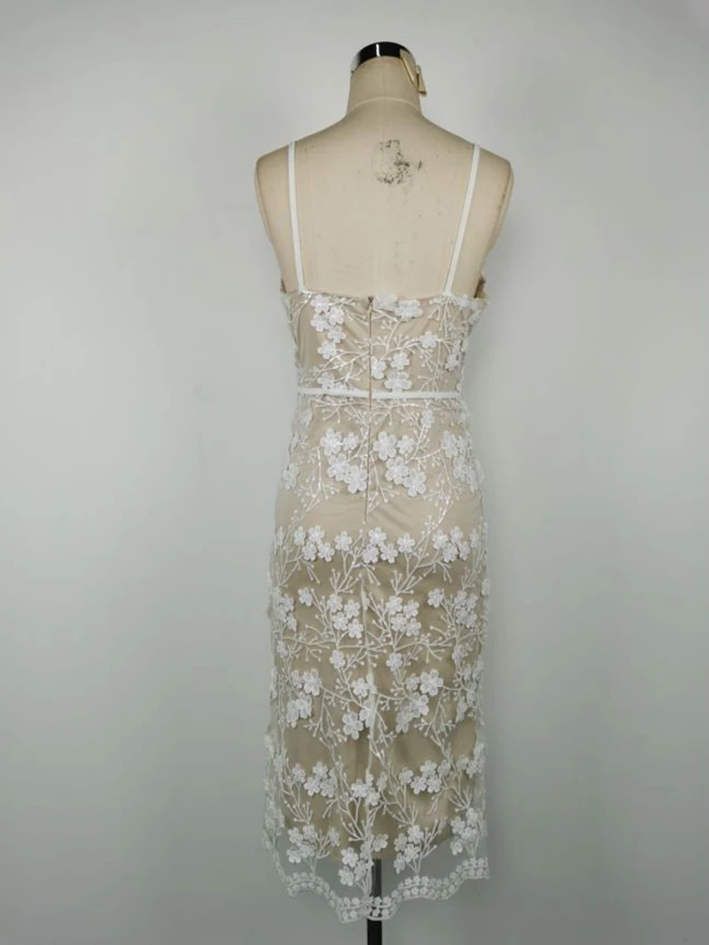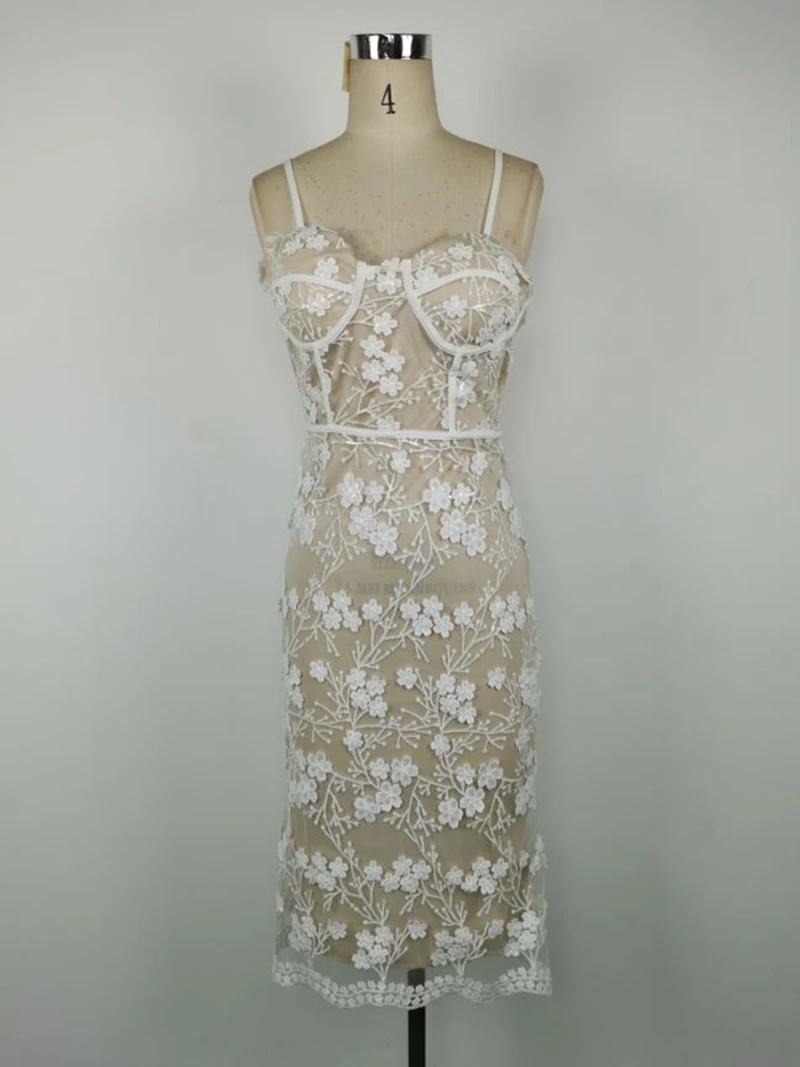 Fashion Ivory Lace Women Evening Dress Ladies Sweetheart Spaghetti Slip Sexy Wedding Dress Elegant Girls Bodycon Party Dress