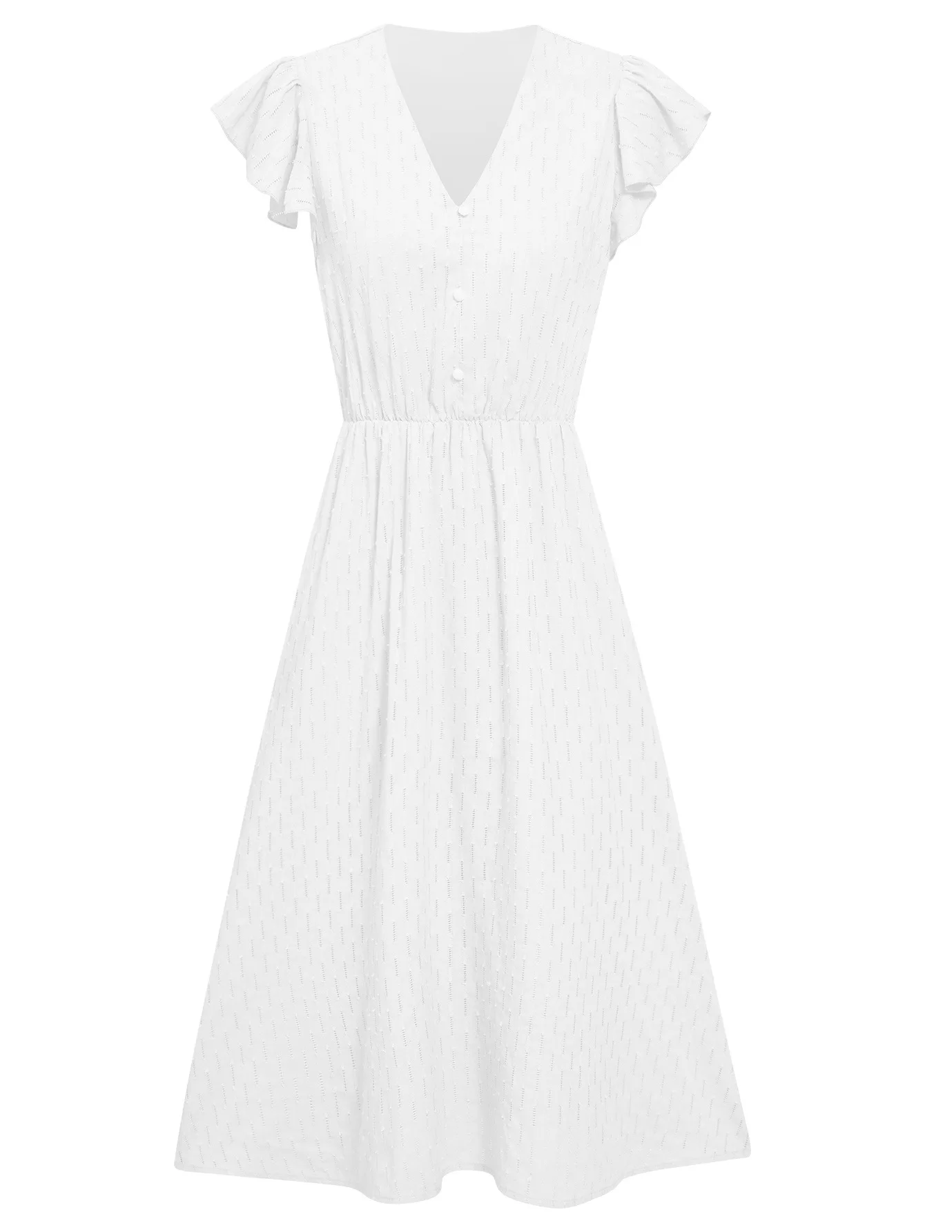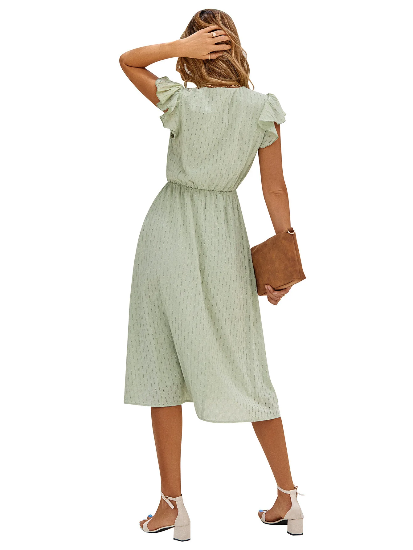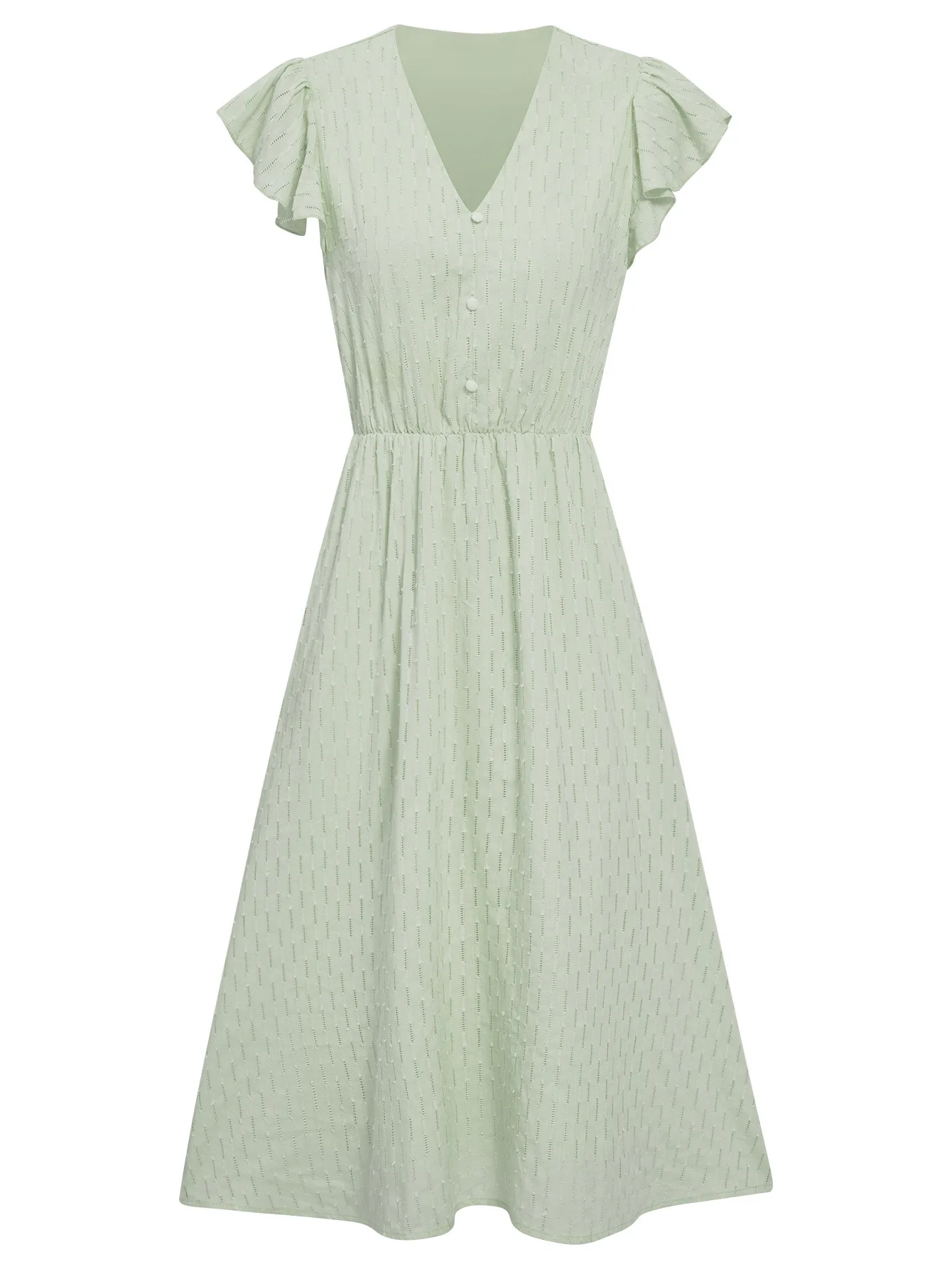 Fashion Leisure Solid Color Fresh V-neck Ruffle Sleeve Dress