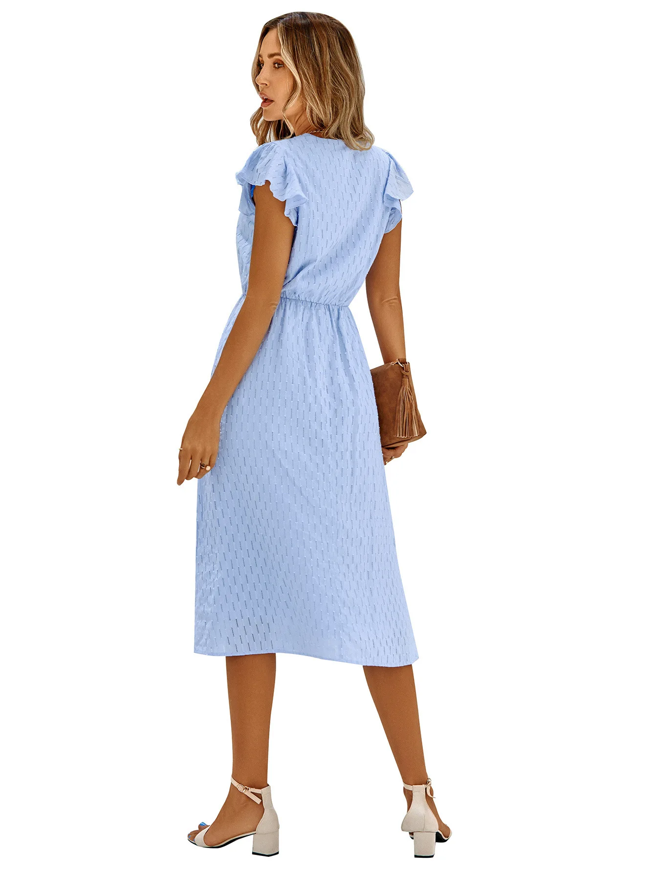 Home>Women' Fashion>Women's Dresses>Midi Dresses>Fashion Leisure Solid Color Fresh V-neck Ruffle Sleeve Dress