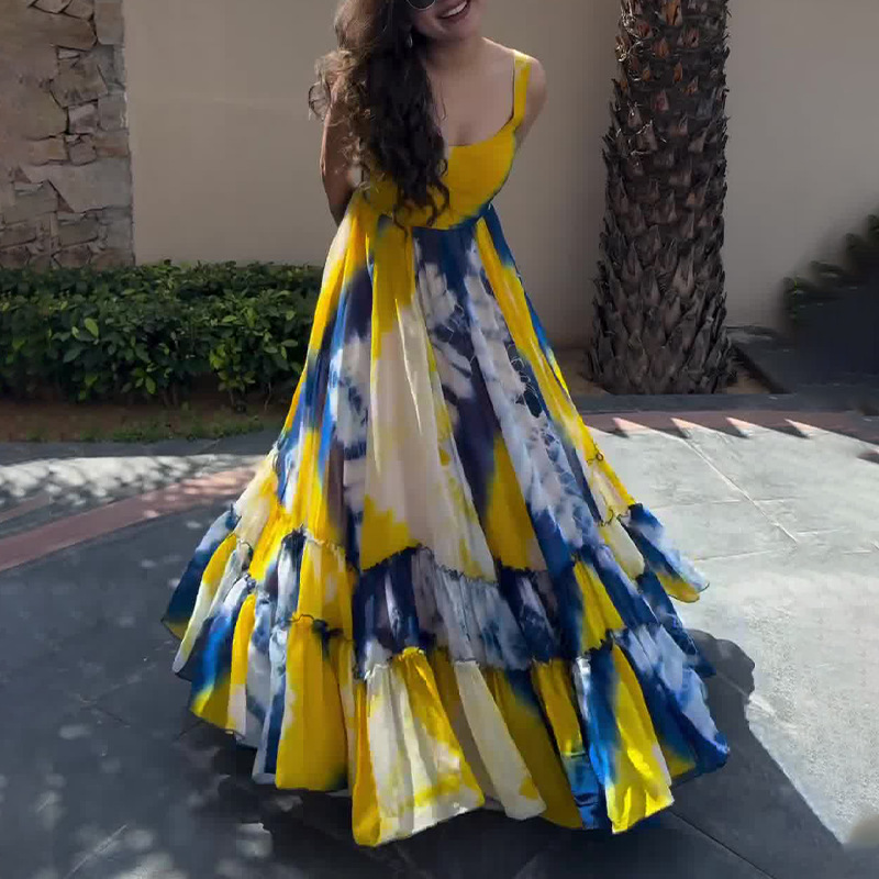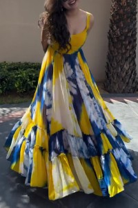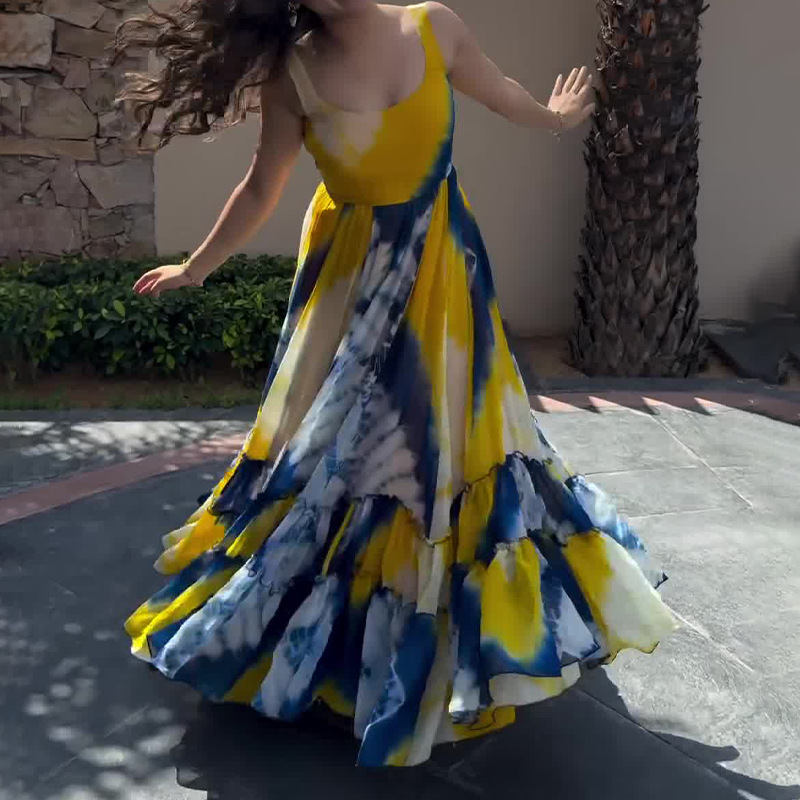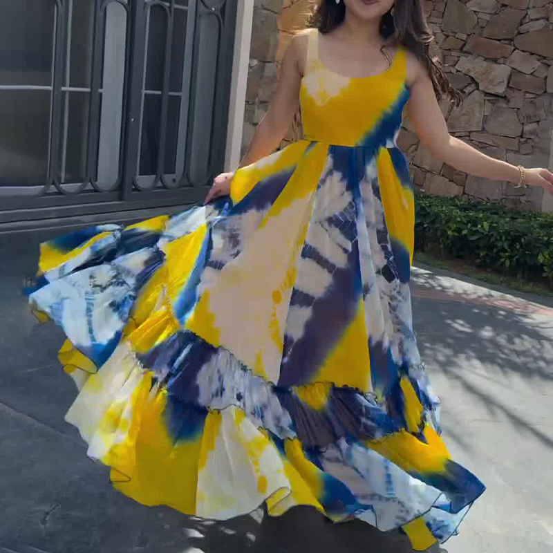 Home>Women' Fashion>Women's Dresses>Maxi Dresses>Fashion Party Square Neck Sleeveless Floral Elegant High Waist Dress