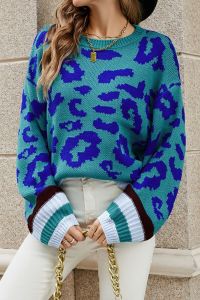Home>Women' Fashion>Women's Tops>Sweaters & Cardigans>Fashion Round Neck Leopard Print Stitching Sweater