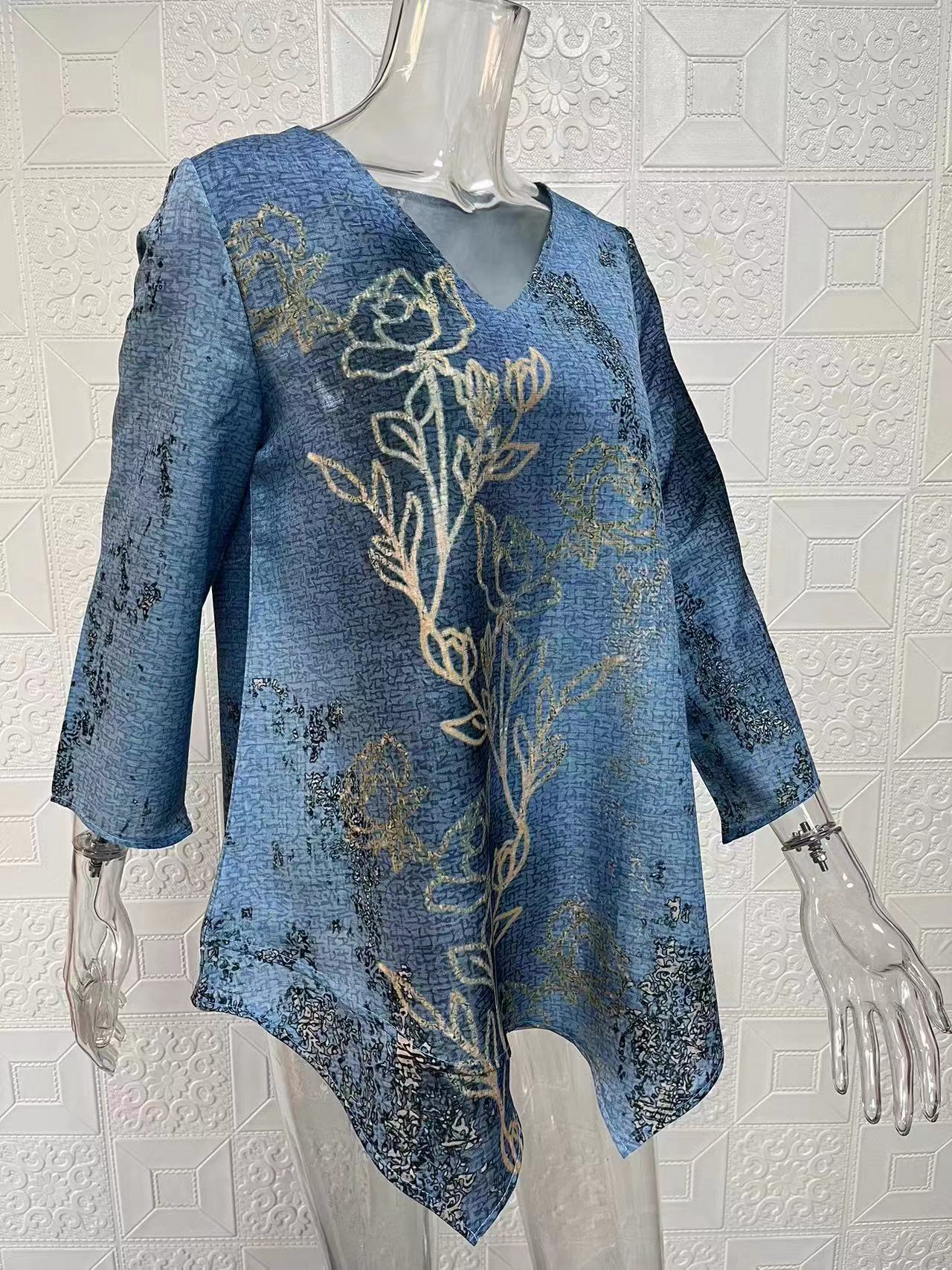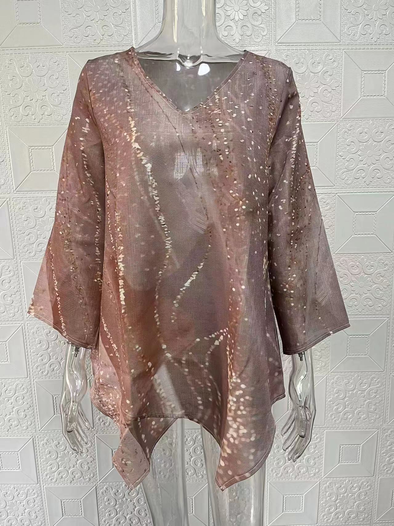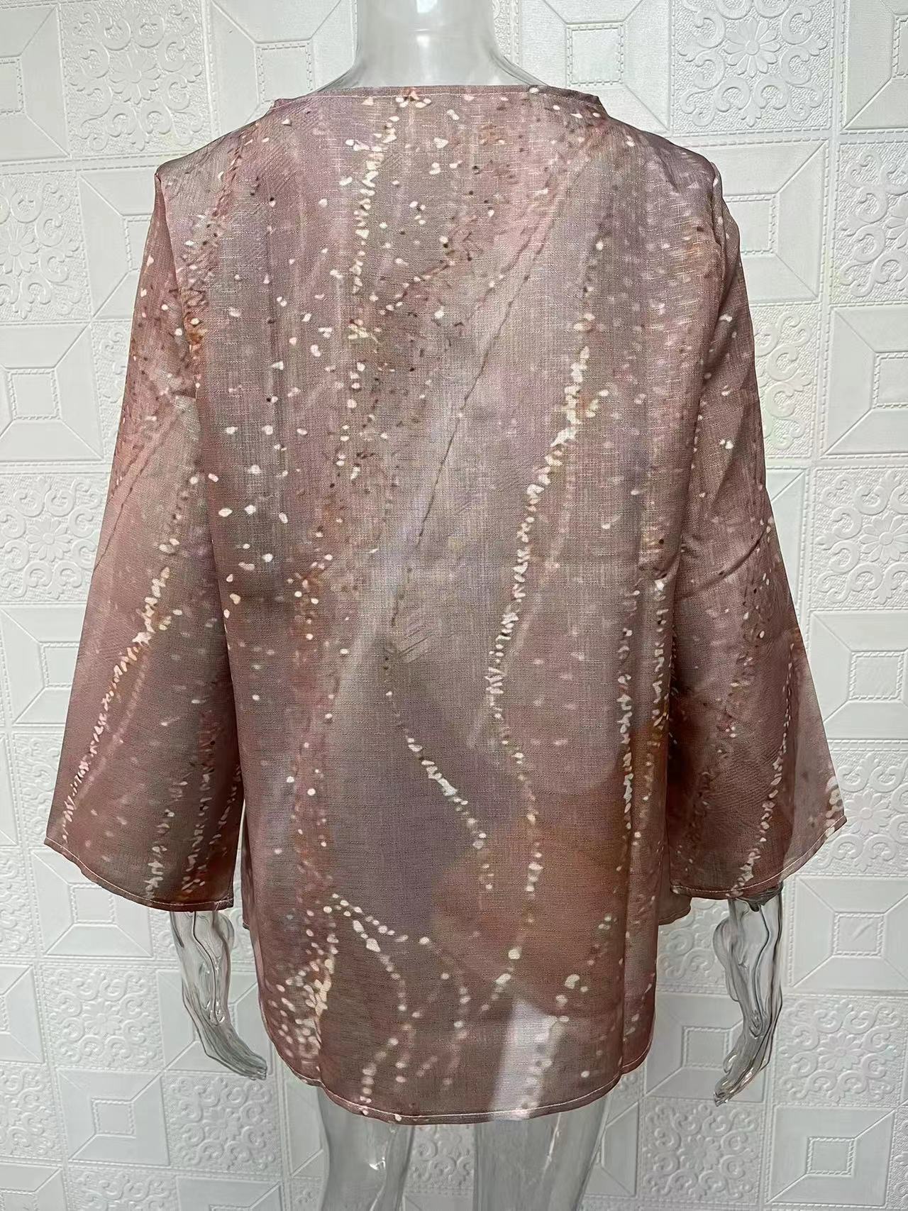 Fashion Women Print Vintage Loose Casual Short Sleeve Tops  Blouses