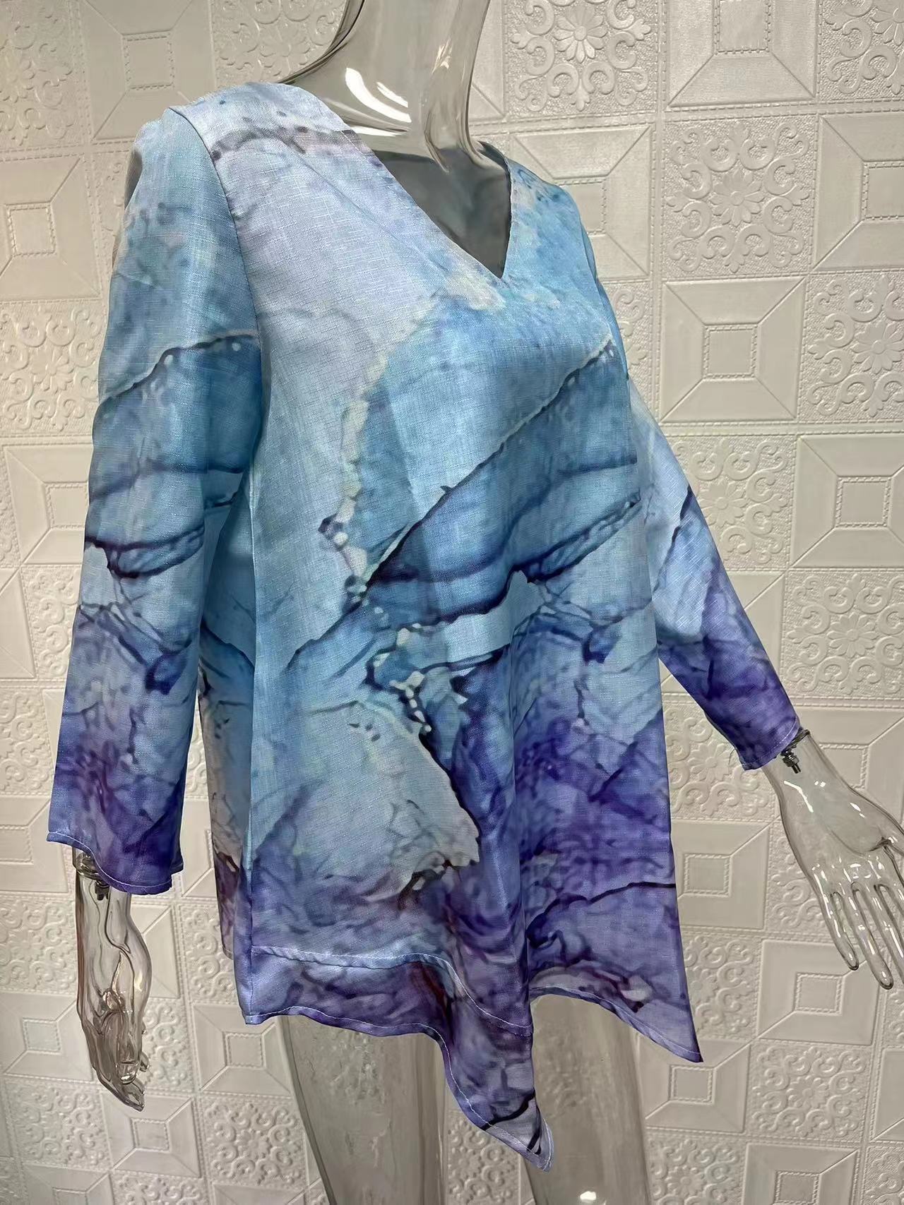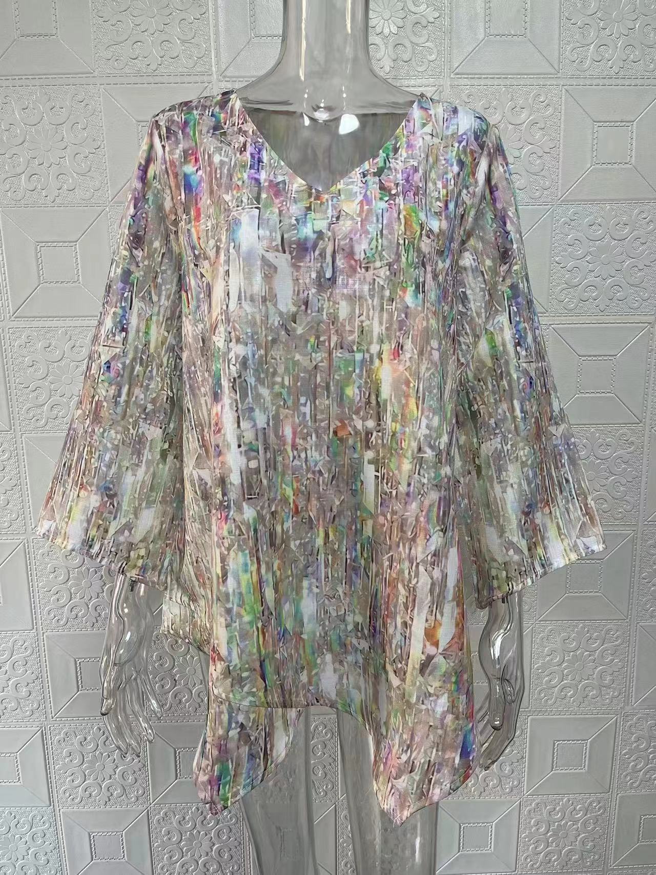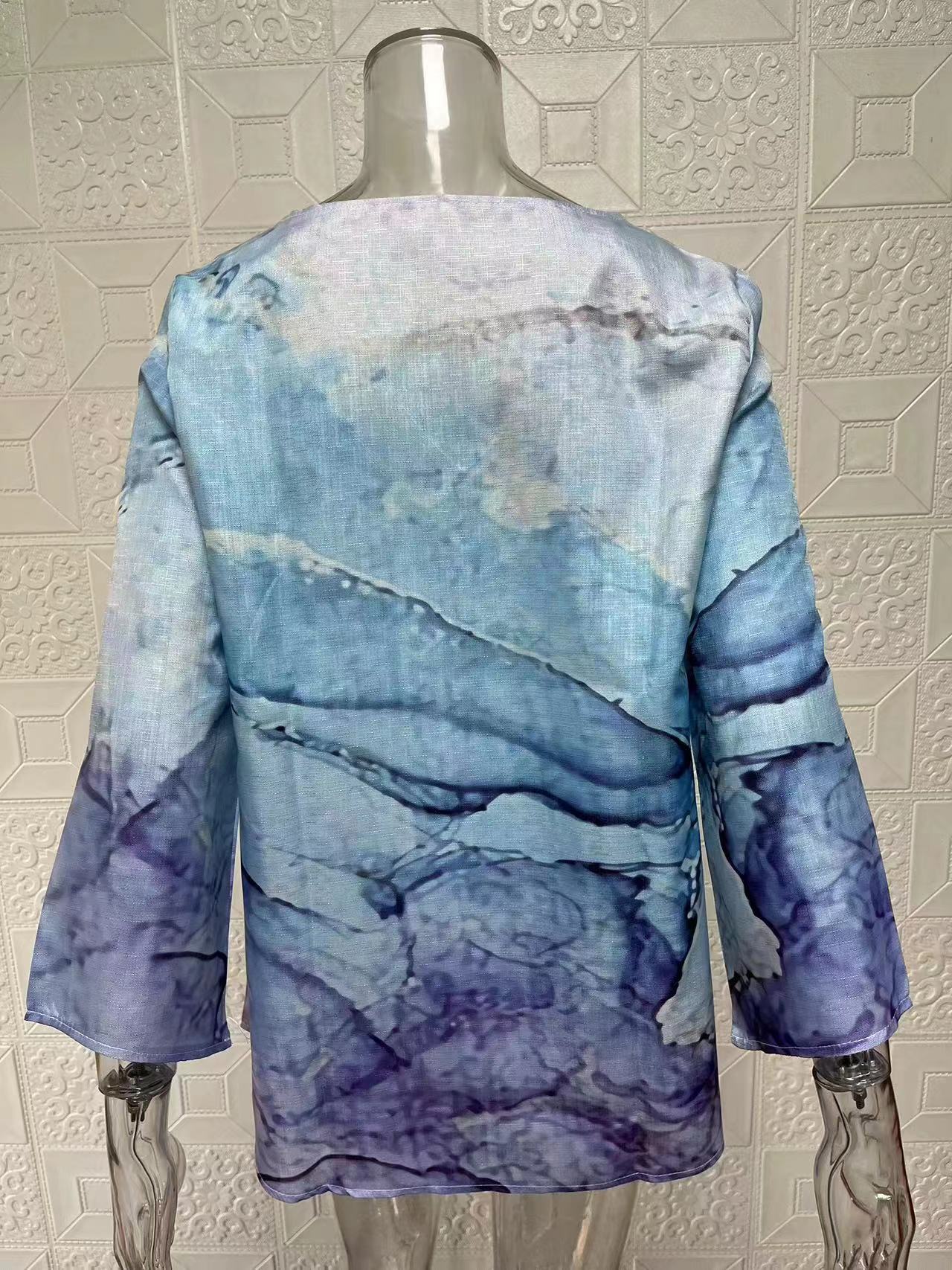 Fashion Women Print Vintage Loose Casual Short Sleeve Tops  Blouses