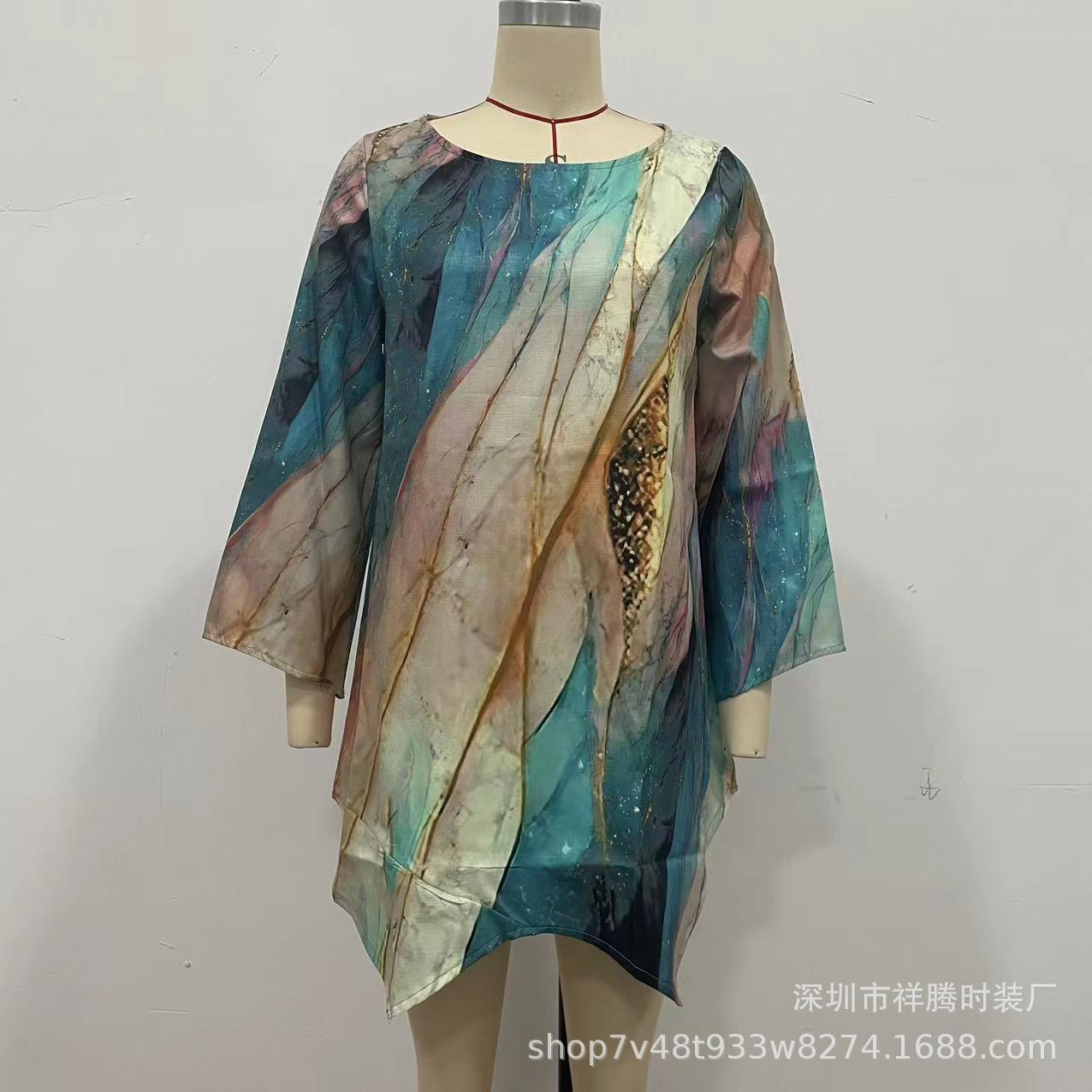 Home>Women' Fashion>Women's Tops>Blouses & Shirts>Fashion Women Print Vintage Loose Casual Short Sleeve Tops Blouses