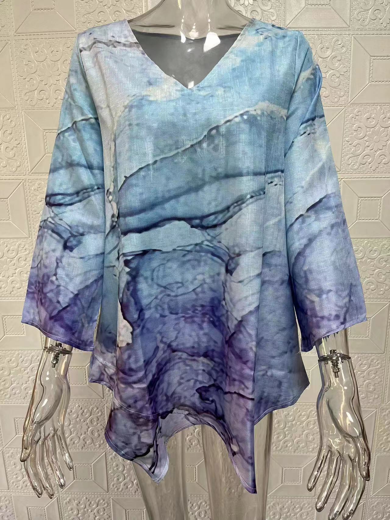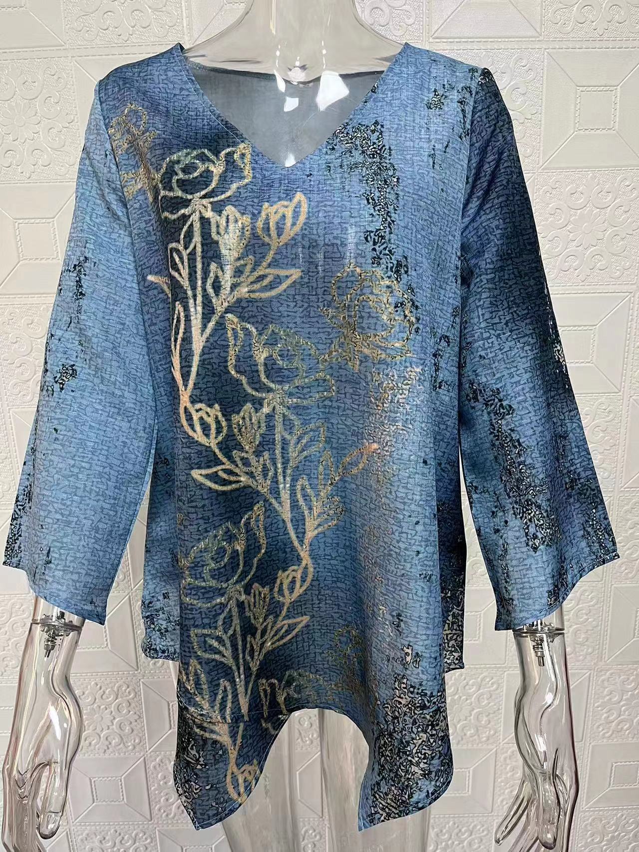 Fashion Women Print Vintage Loose Casual Short Sleeve Tops Blouses