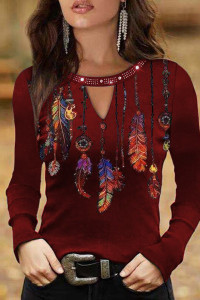 Fashion Women's Long Sleeve Hollow Round Neck Loose Blouses