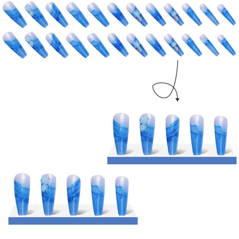 Fashion ice Blue Three-Dimensional Camellia Wearable Detachable Nail