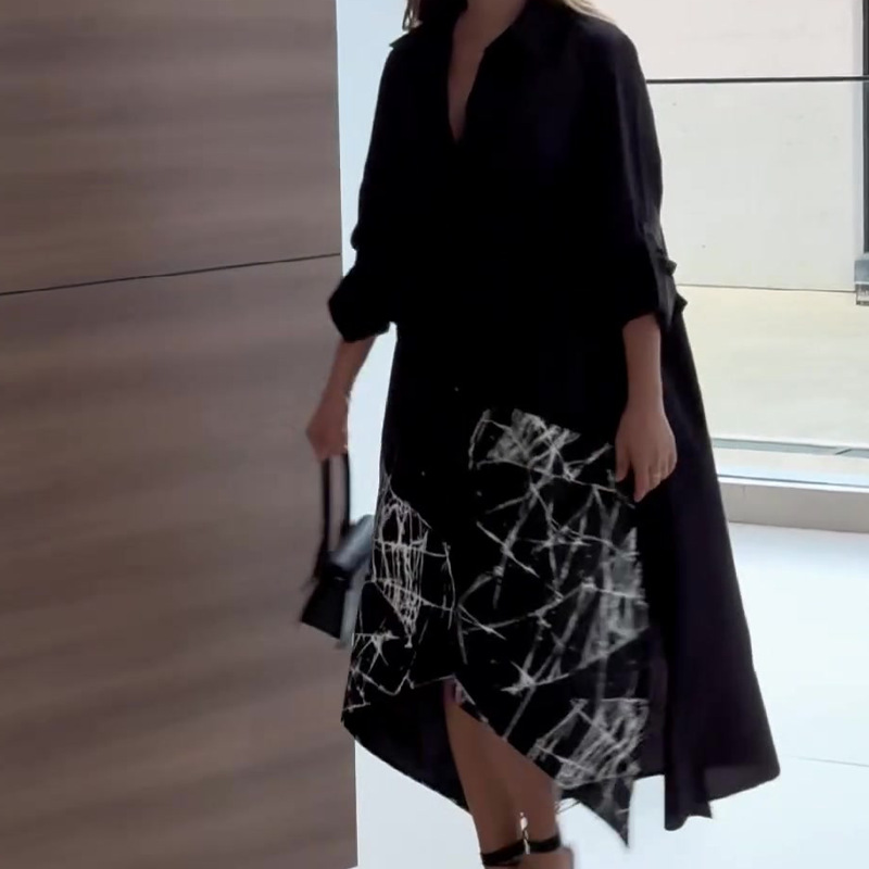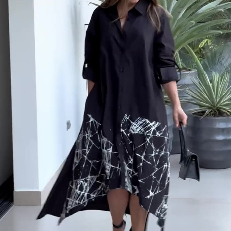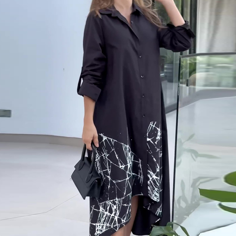 Home>Women' Fashion>Women's Dresses>Midi Dresses>Fashionable Contrast Color Printed Buttoned Long Sleeve Wide Shirt Dress