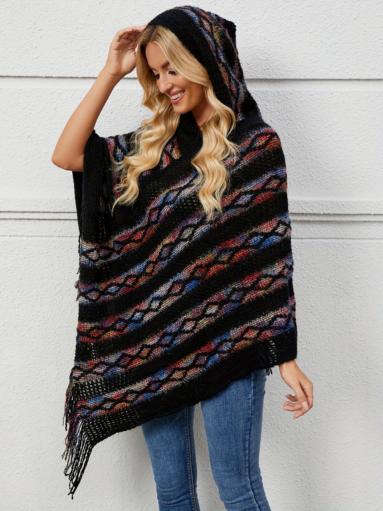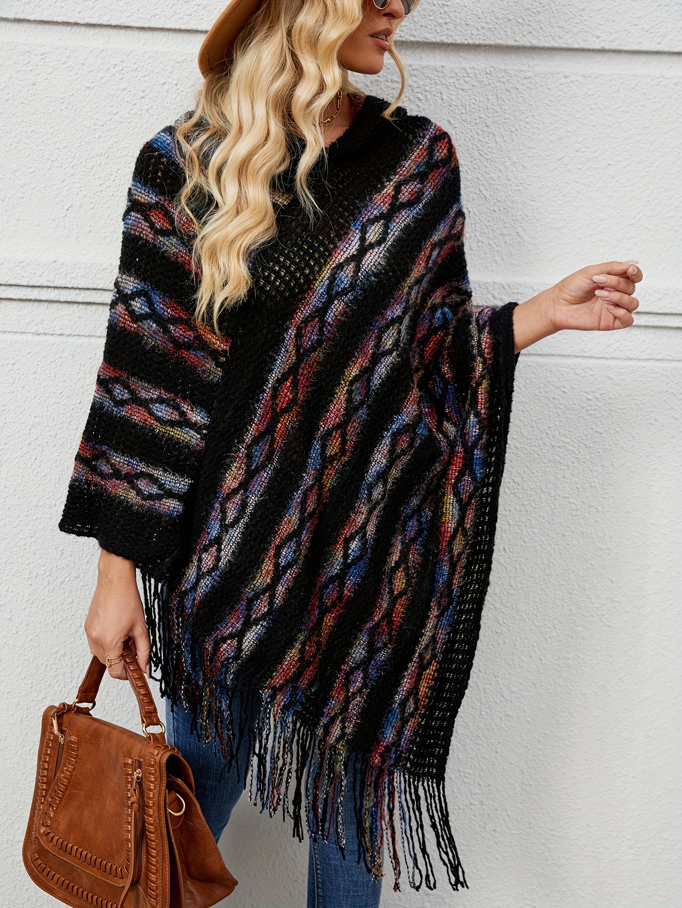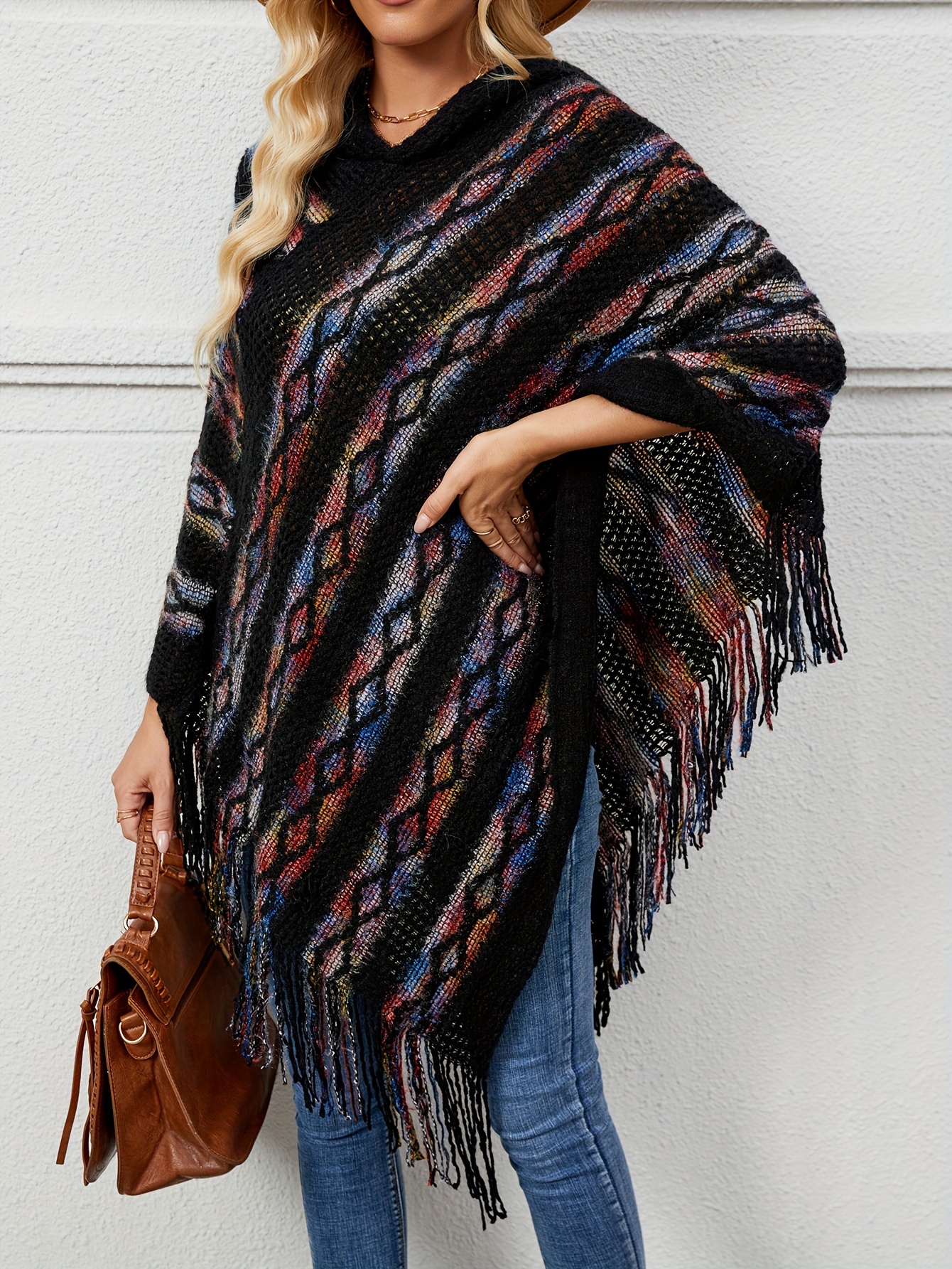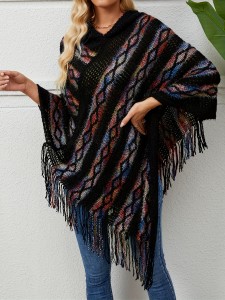 Home>Women' Fashion>Women's Tops>Sweaters & Cardigans>Fringe Trim Marled Poncho Elegant Hanky Hem V Neck Sweater For Fall & Winter