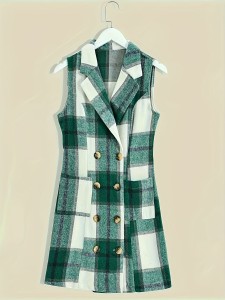 • Chic and stylish: Classic plaid pattern and double-breasted design make you look fashionable and sophisticated.