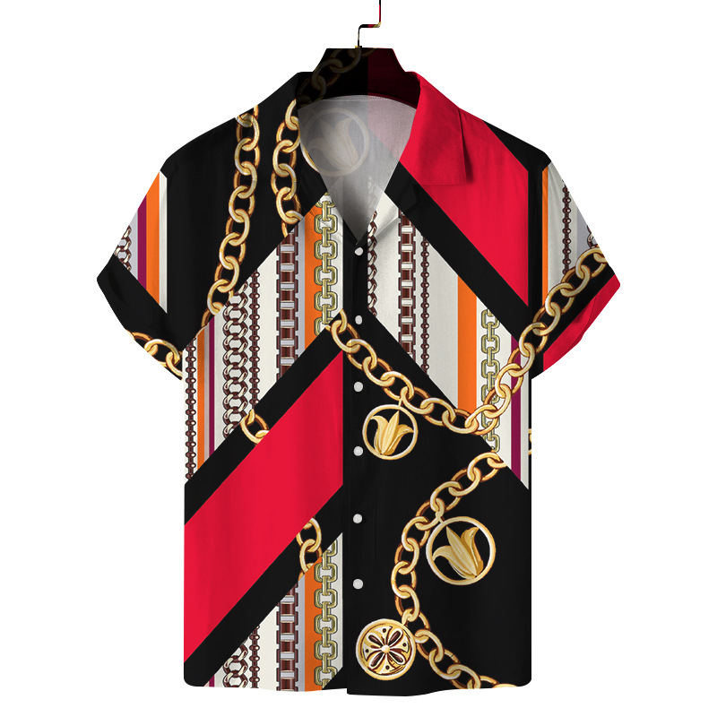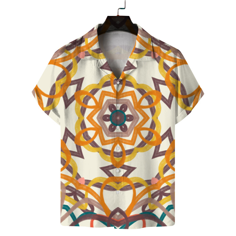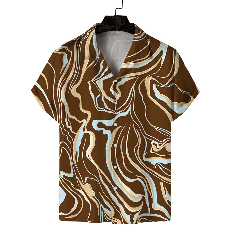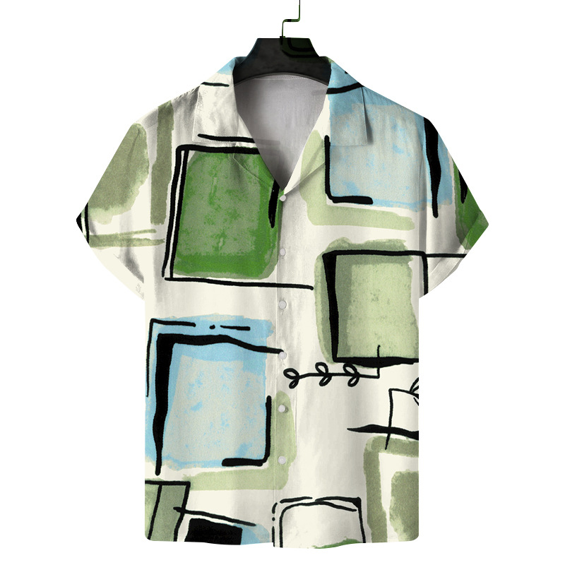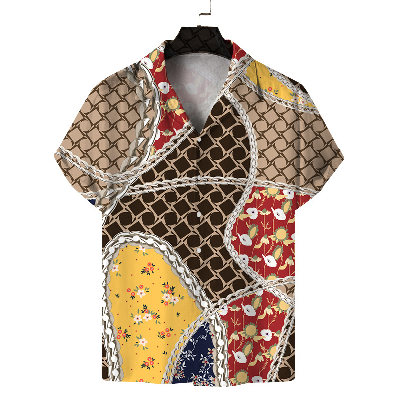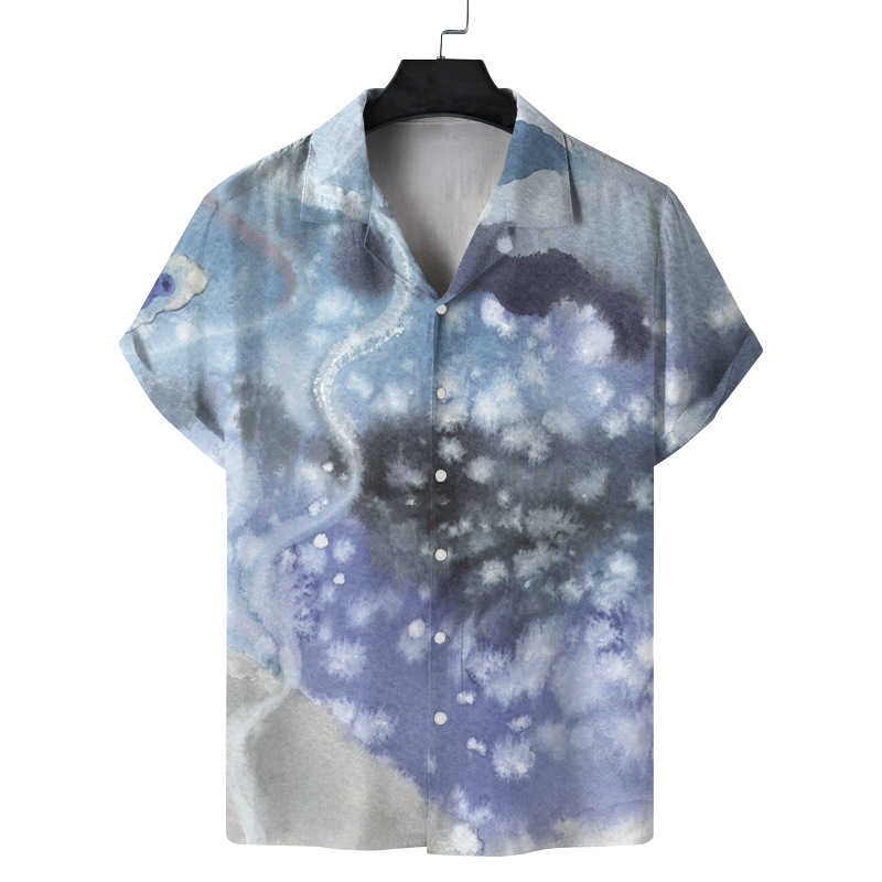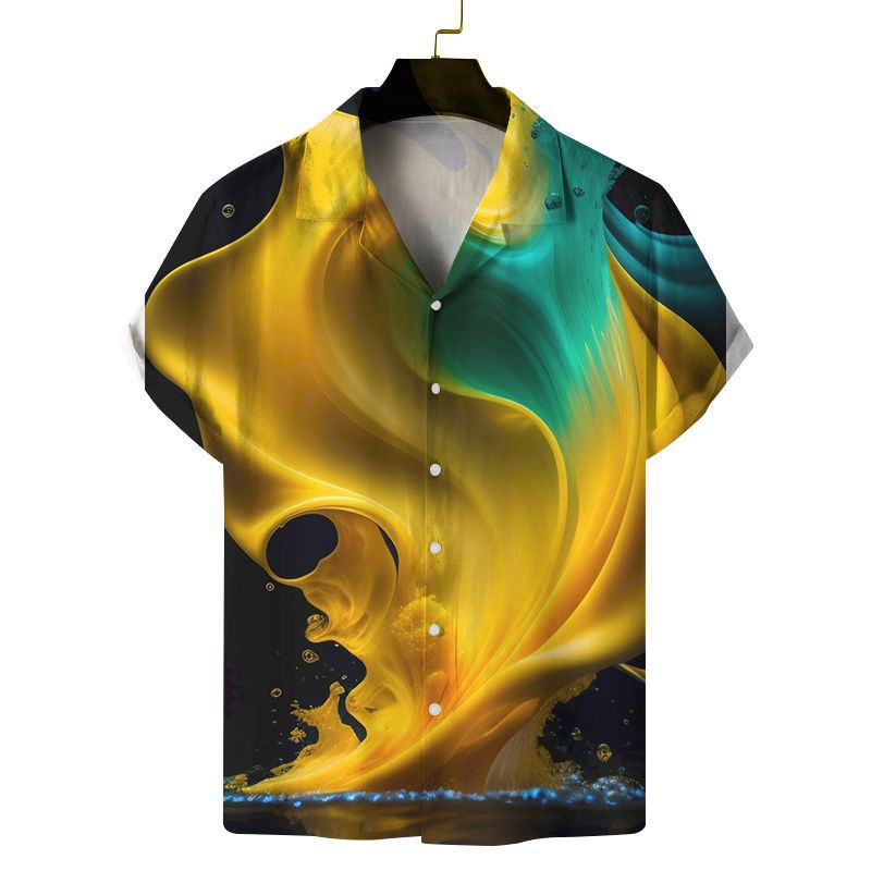 Men's Digital Printing Short Sleeve Lapel Casual Beach Shirt