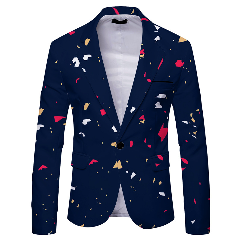 Men's Printed Casual Fashion Slim Blazer Tops Outerwear