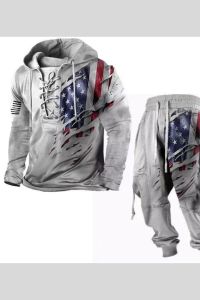 Home>Men's Fashion> Men's Two Piece Set>Mens Hooded Lace Up American Flag Graphic Print Sweatshirt Elastic Pants Two Piece Set
