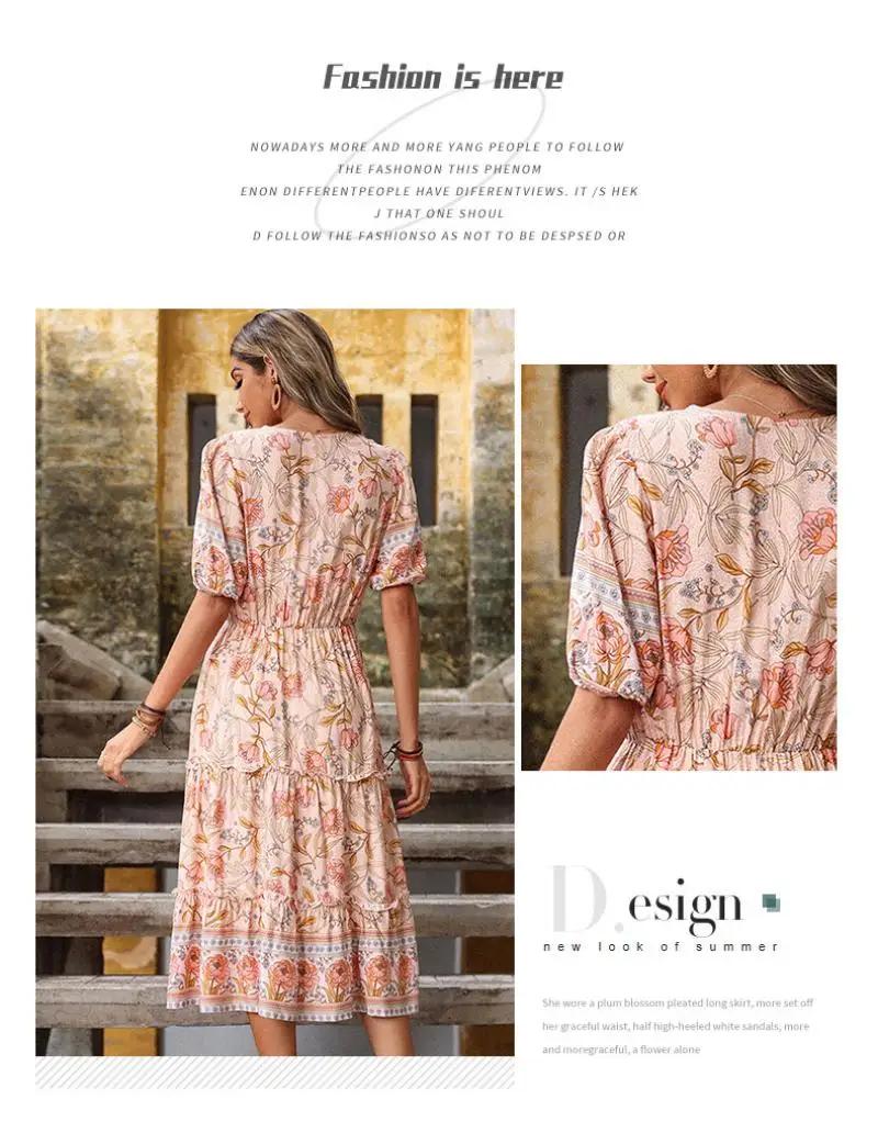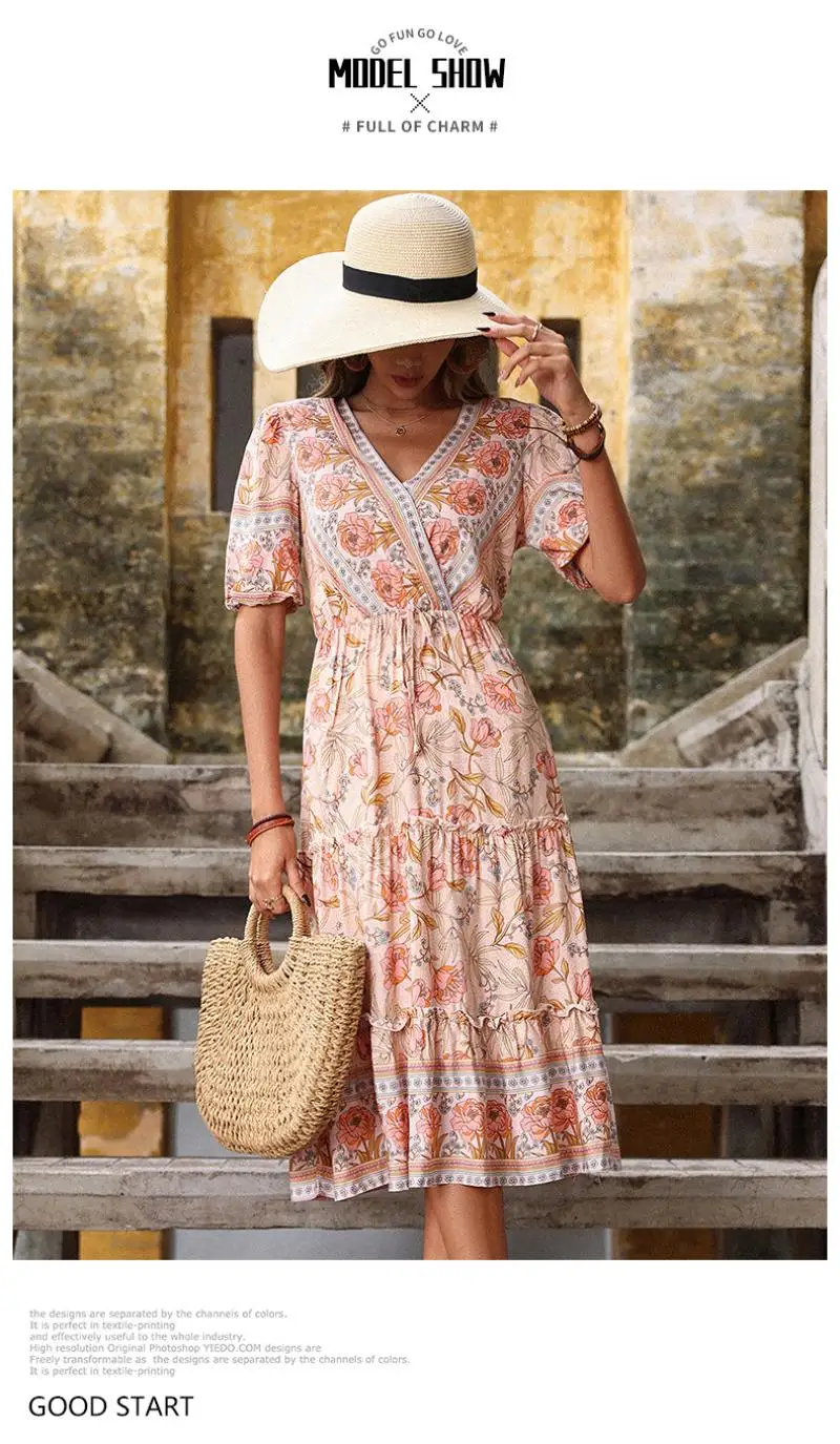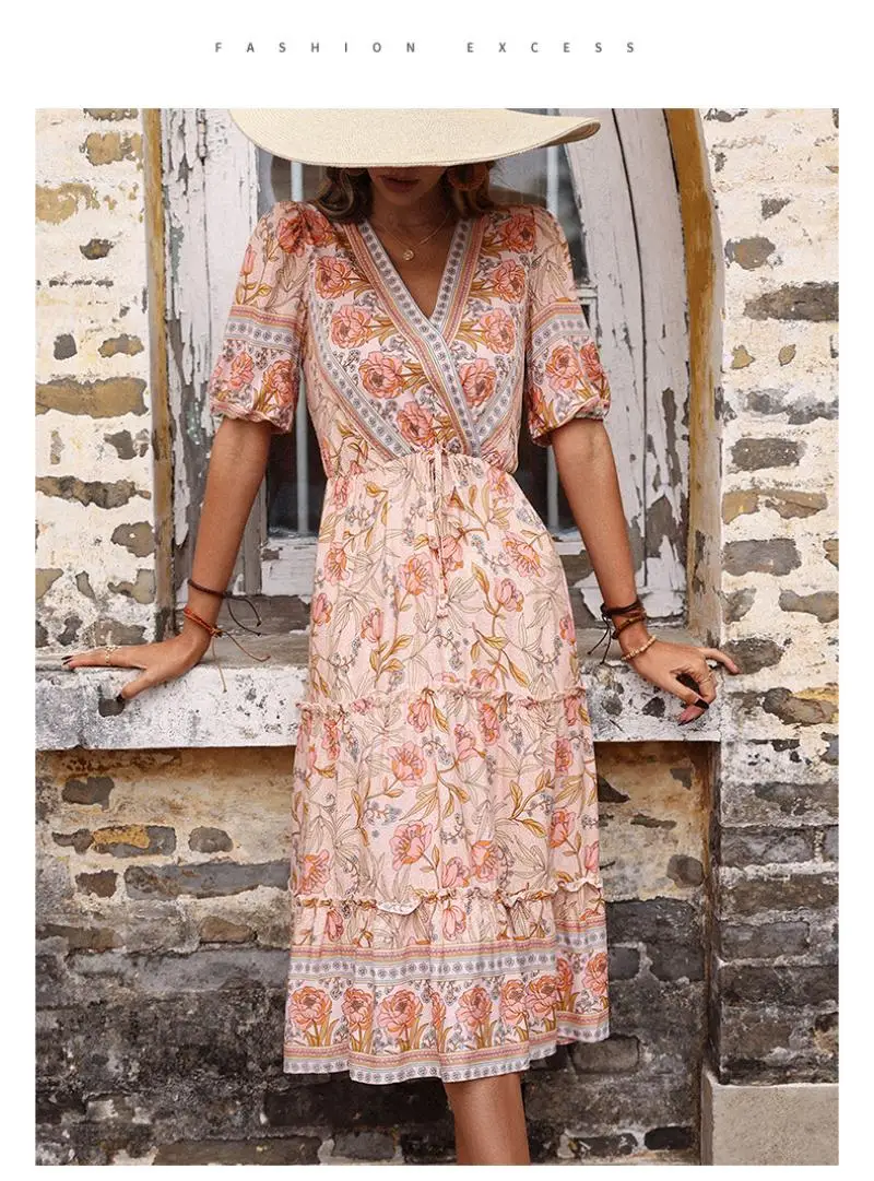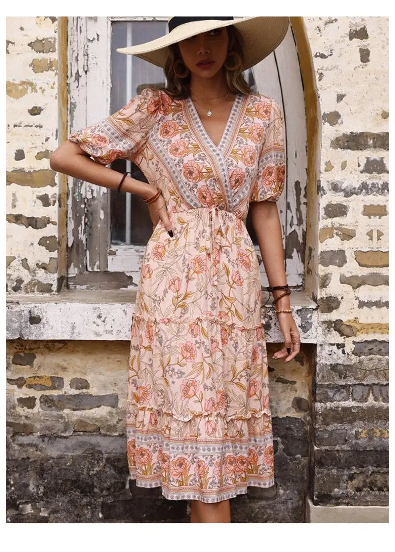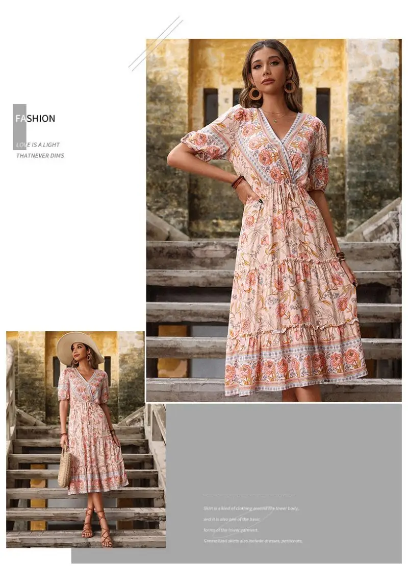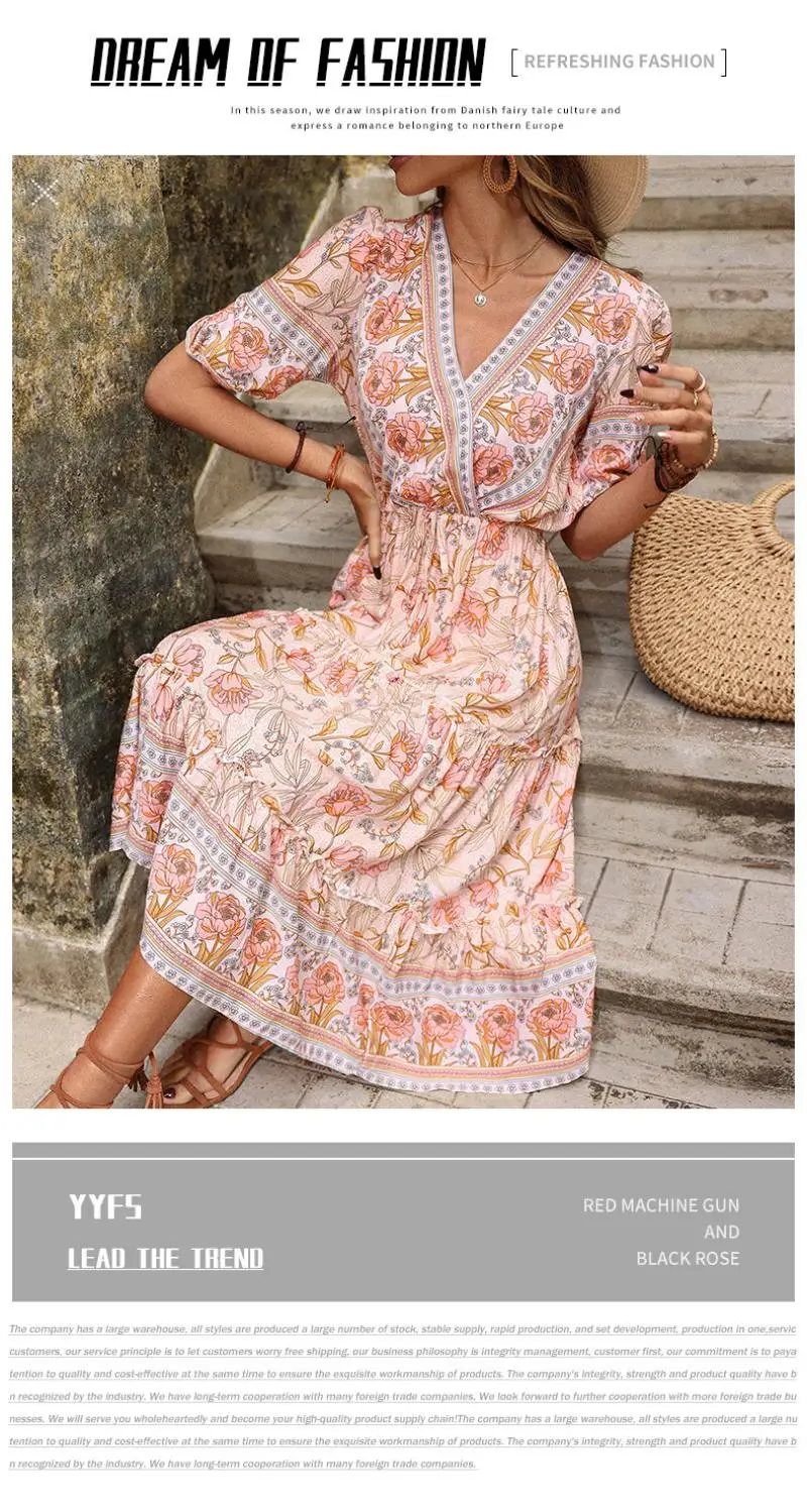 New Beach V Neck Sexy Party  Boho High Waist Elegant  Vacation Dress