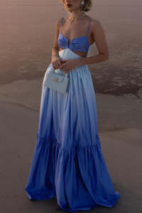 Home>Women' Fashion>Women's Dresses>Maxi Dresses>Ocean Breeze Gradient Color Print Cutout Waist Tiered Maxi Dress