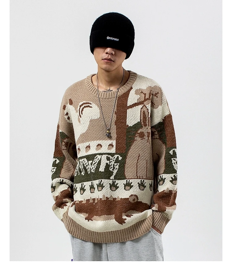 Zebra Pattern Knitted Sweater, Men's Casual War...