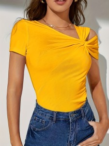 Home>Women' Fashion>Women's Tops>T-Shirts>Ruched Solid Color T-Shirt, Casual Short Sleeve T-Shirt For Spring & Summer, Women's Clothing