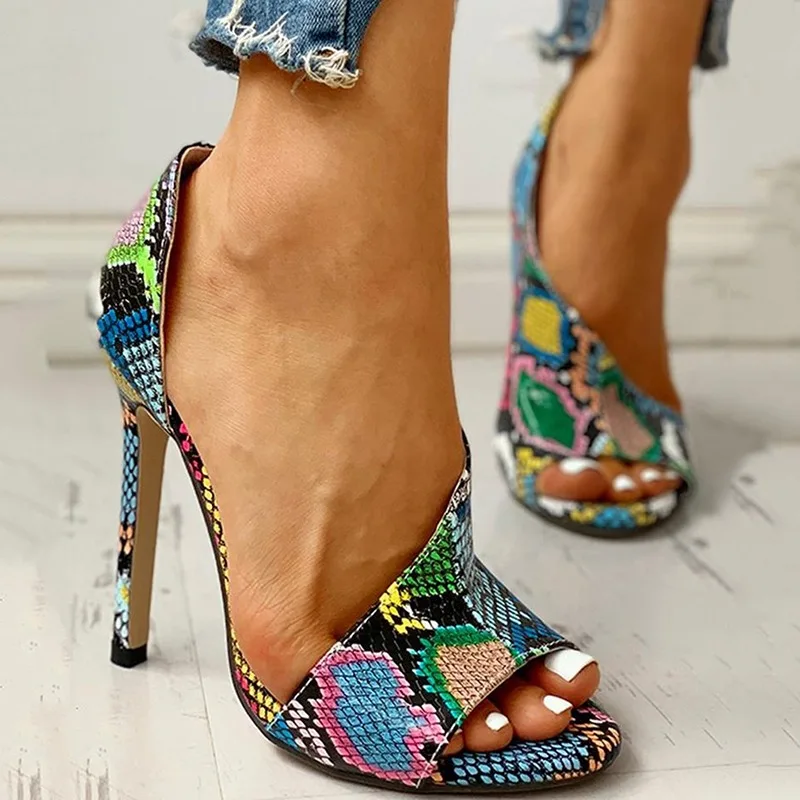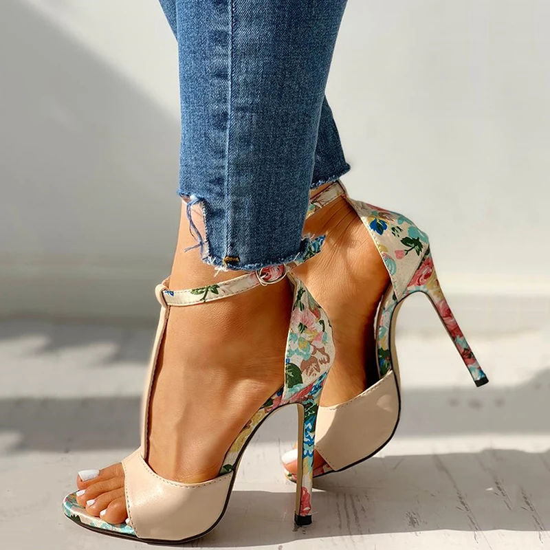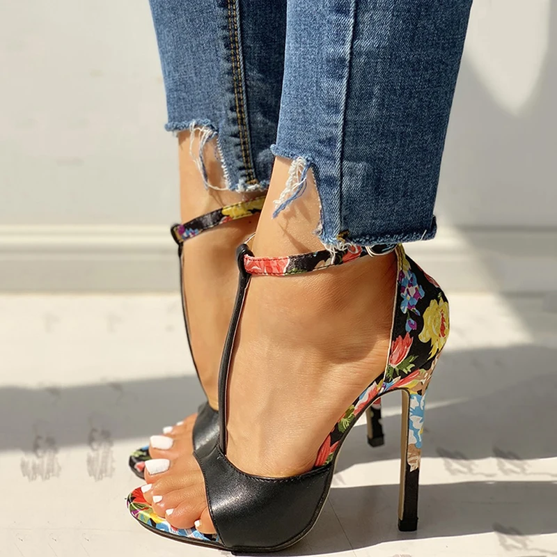 Sexy Women T Strap Print Fashion Open Toe Party Heels