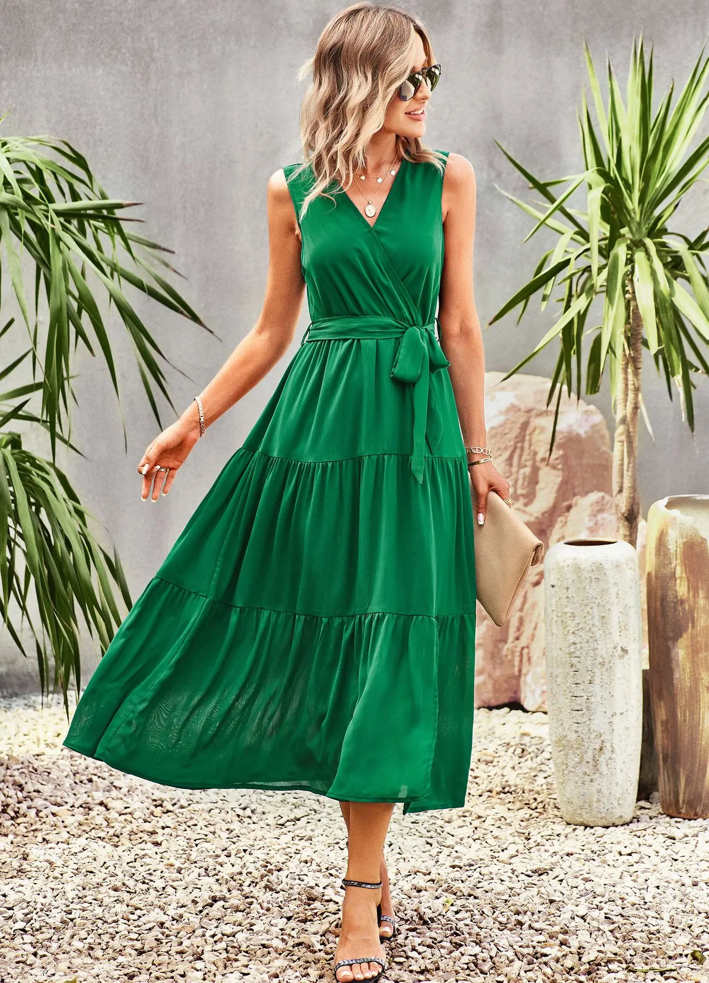 Sleeveless V Neck Casual Party Elegant Fit Solid Color Maxi Dress