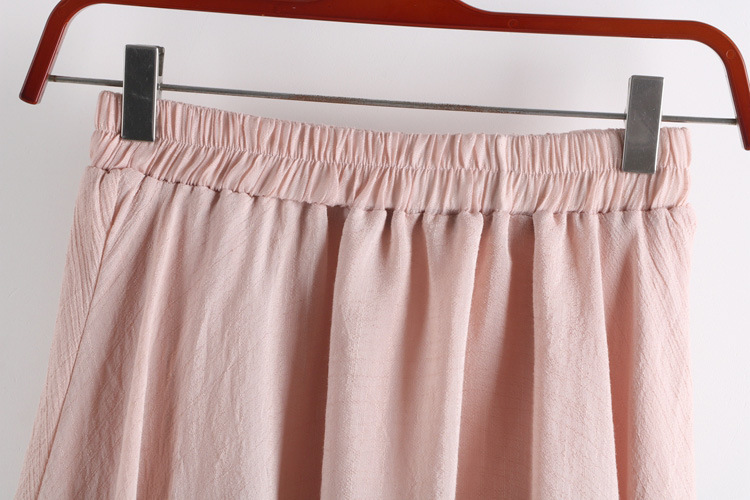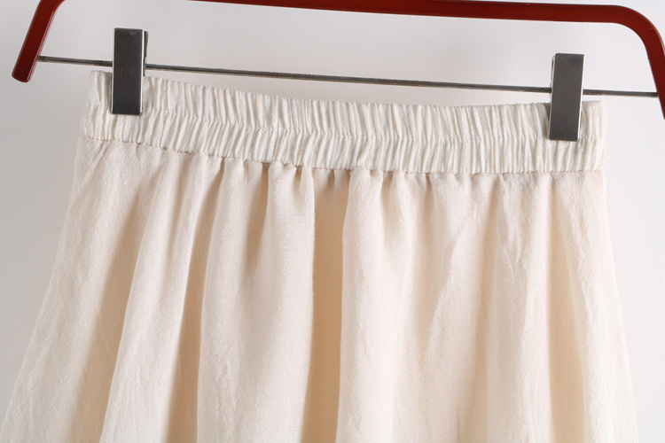 Solid Color Fashion Cotton Linen High Waist Casual A-Line Skirt