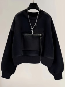 Solid Zip Front Pullover Sweatshirt, Casual Long Sleeve Crew Neck Sweatshirt For Fall & Winter, Women's Clothing