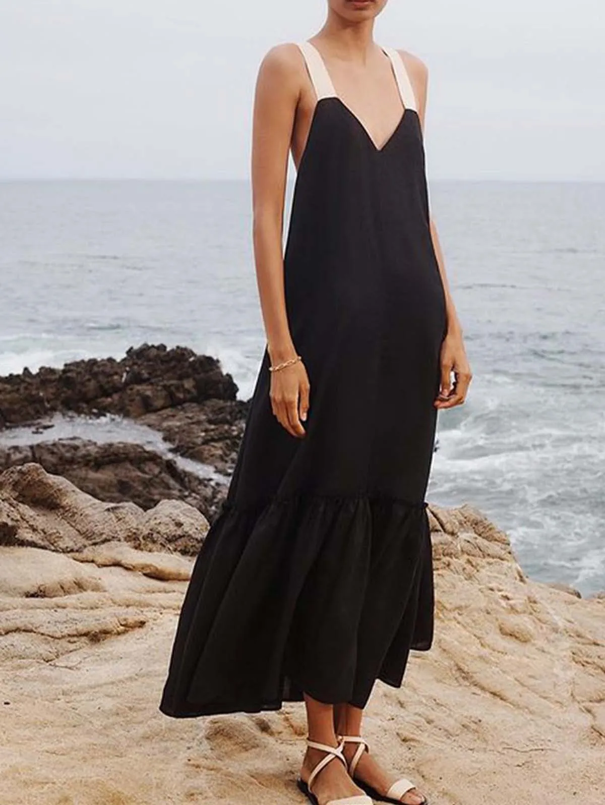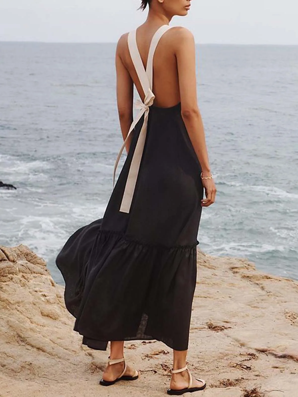 This summer women's casual color contrast lacebackless Sleeveless loose maxi dress is the perfect addition to your summer wardrobe. The dress features a beautiful color contrast design that adds a vibrant and eye-catching touch to your look. The lace detailing on the back adds a feminine and elegant touch, while the sleeveless design keeps you cool and comfortable in the summer heat. The loose and flowing silhouette of the dress provides a relaxed and breezy fit, ideal for casual outings or beach days. With its maxi length, this dress offers a graceful and stylish look for any occasion.