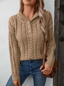 This Thick Buttoned Twist Hooded Sweater provides comfortable warmth and stylish versatility. The thick. buttoned design offers insulation against cool weather. while the twist hood adds a unique touch to any outfit. Perfect for both casual and dressy occasions.