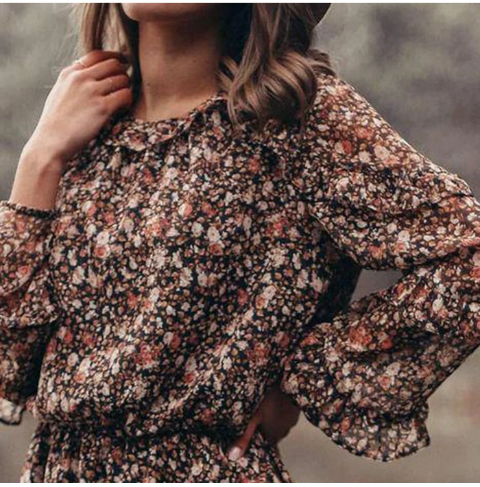 Brand Name:streetsangels, Elasticity:Non Strech, Sleeve Style:Lantern Sleeve, Fabric Type:Chiffon, Pattern Type:Print Fit Type:Loose Fit, Silhouette:A-LINE,
