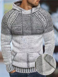 Home>Men's Fashion>Men's Sweaters & Cardigan>Vibrant Color Block Knit Sweater Hoodie for Men - Soft, Retro, Casual, Pullover Design with Hood - Perfect for Winter, Fall, and as Gifts