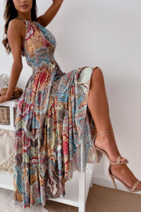 Vintage Bohemian Print Backless Off Shoulder Dress