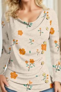 " the changing seasons in style with our Women's Spring and Autumn Artistic Retro Print Round Neck Pullover. This stylish top showcases a unique retro print that will make you stand out in any crowd. The high-quality fabric ensures breathability and comfort, allowing you to wear it all day long without feeling stuffy. The pullover features a round neck and is with large decorative buttons that provide a distinctive . Whether you're at work, enjoying your , or traveling, this pullover is a versatile choice. It's also easy to care for, allowing for normal hand or machine washing. Please note that the pullover runs true to size and we recommend referring to the size chart before making a purchase. This women's pullover is not a clothing item but also a to your unique taste and style."