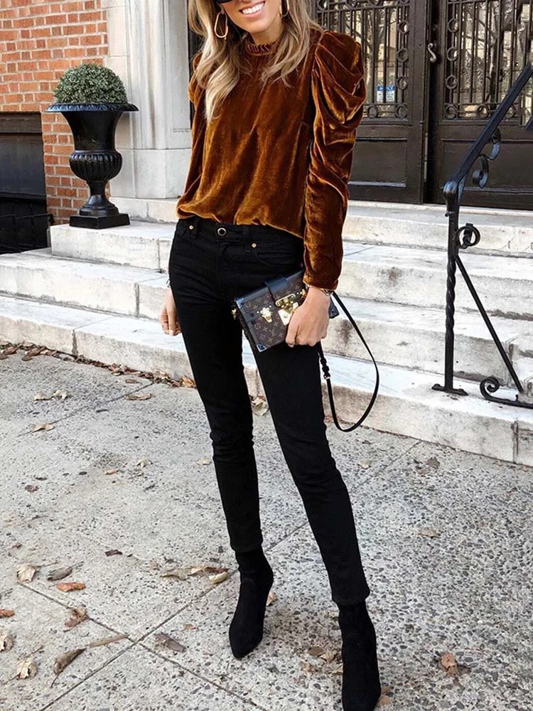Home>Women' Fashion>Women's Tops>Hoodies & Sweatshirts>Women Velvet Puff Sleeve Sweatshirt
