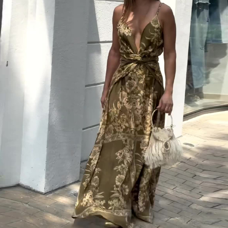 Home>Women' Fashion>Women's Dresses>Maxi Dresses>Women's Bohemian Fashion Printed Casual Vacation Suspender Long Skirt