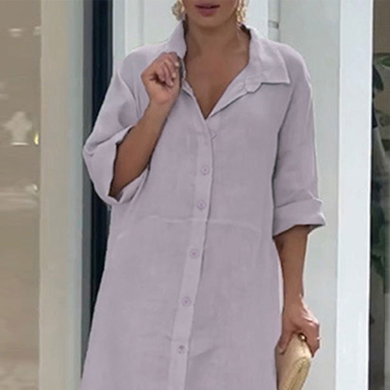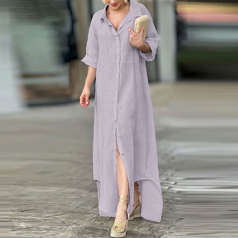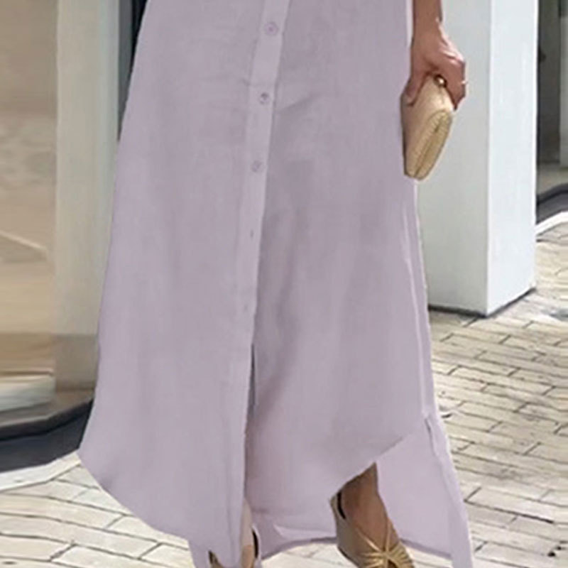 Women's Elegant Casual Loose Single Breasted Simple Maxi Dress