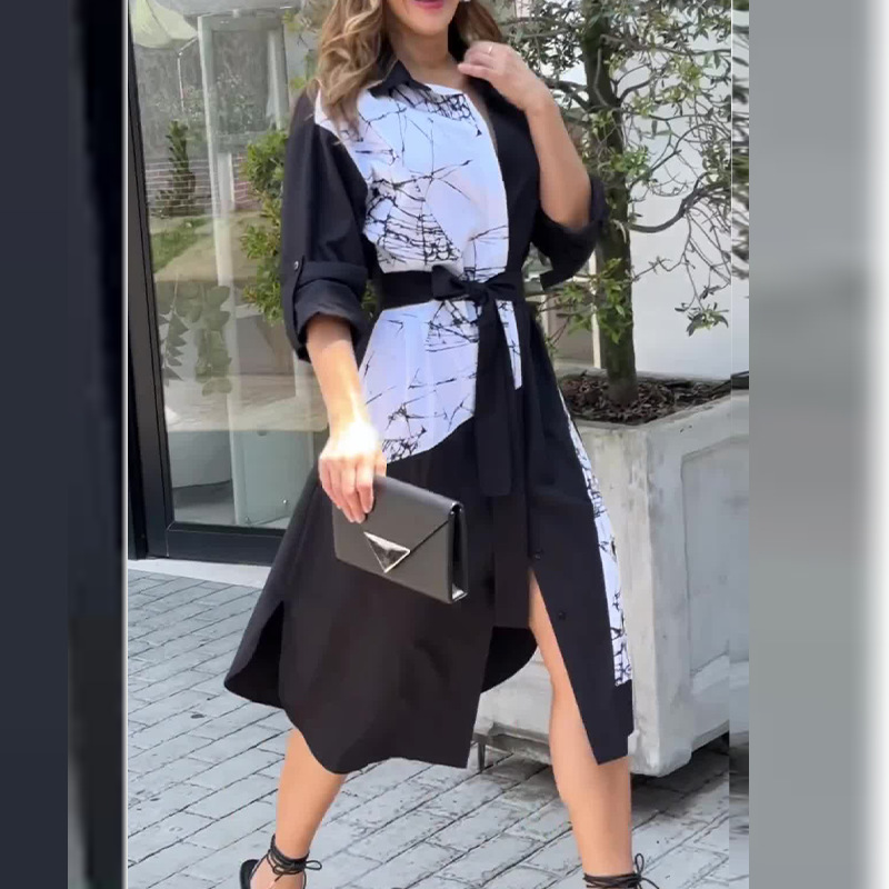 Home>Women' Fashion>Women's Dresses>Midi Dresses>Women's Elegant Fashion Design Color Block Print Temperament Midi Dress