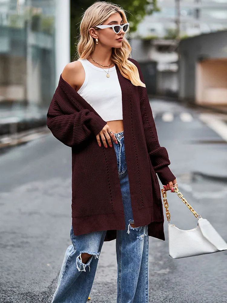 Women's Elegant Loose Sweater Fashion Solid Color Knit Cardigan