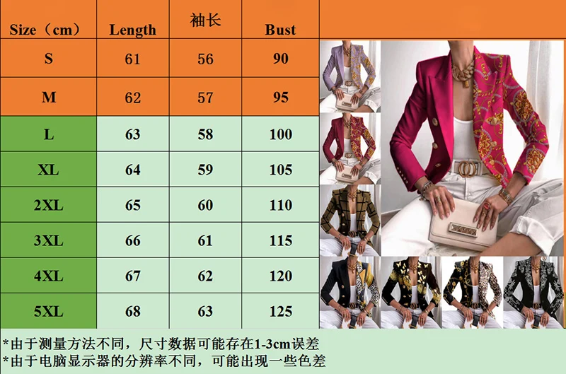 Women's Fashion Print Slim Fit Cropped Double Breasted Top Blazers