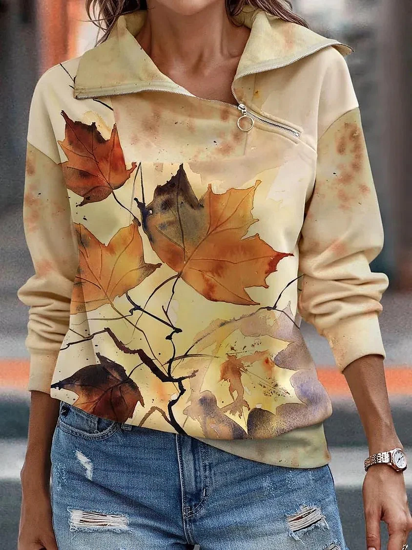 Women's Fashion Street Print  Loose Casual Zipper Hoodies & Sweatshirts
