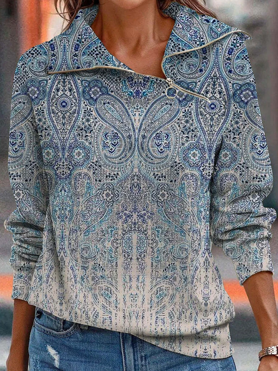 Women's Fashion Street Print Loose Casual Zipper Hoodies & Sweatshirts