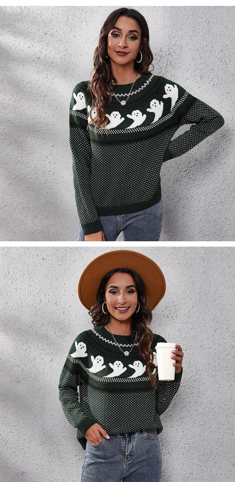 Women's Loose Fashion Skull Jacquard Retro Polka Dot Sweaters